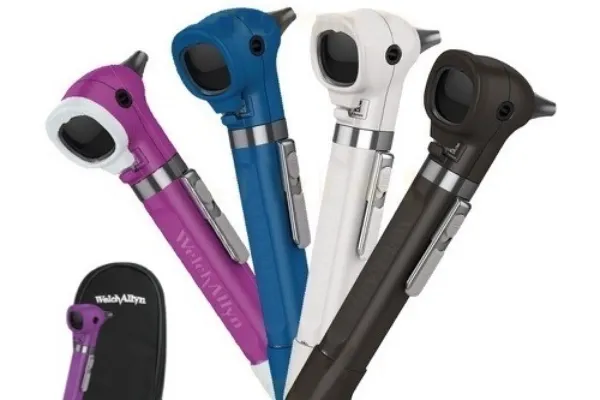 An ENT otoscope, also known as an auriscope, is a medical instrument used by doctors to examine the ear canal and eardrum. It typically consists of a handle and a head containing a light source and a magnifying lens. Disposable specula, which are cone-shaped attachments, are used to gently insert into the ear canal to provide a clear view. Otoscopes are essential for diagnosing various ear conditions like infections, wax buildup, and eardrum perforations.