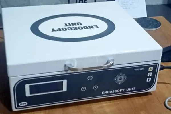 This advanced medical endoscope system is a comprehensive diagnostic tool featuring an integrated light source and digital display for enhanced visibility during procedures. The sophisticated control panel offers precise manipulation and settings adjustment, while the included cable ensures reliable connectivity. The system's compact design includes a flip-up display screen for convenient viewing and storage. The intuitive interface with multiple control buttons allows for seamless operation and parameter adjustments. The high-quality light source provides optimal illumination for detailed examination, while the digital display offers clear visualization of the procedure. This professional-grade equipment is designed for medical facilities, combining functionality with user-friendly operation. The system's modern architecture incorporates essential features for accurate diagnostic procedures, making it a valuable addition to any medical setup.